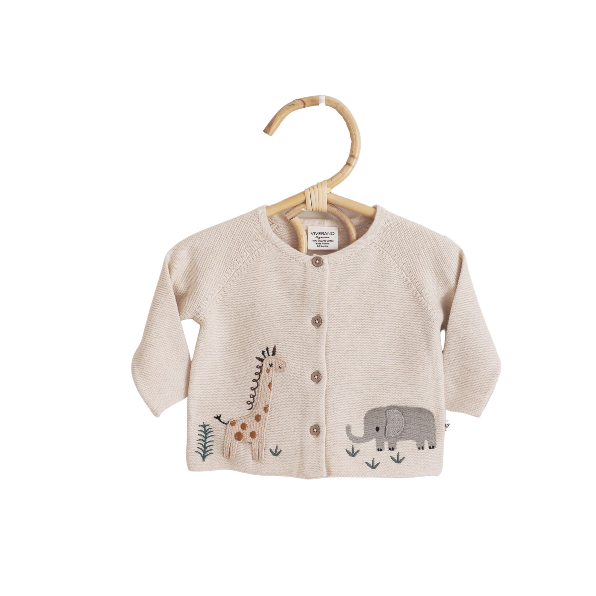 100% organic cotton sweater knit long sleeve cardigan with sweet & fun safari animals embroidery in front, super cute!