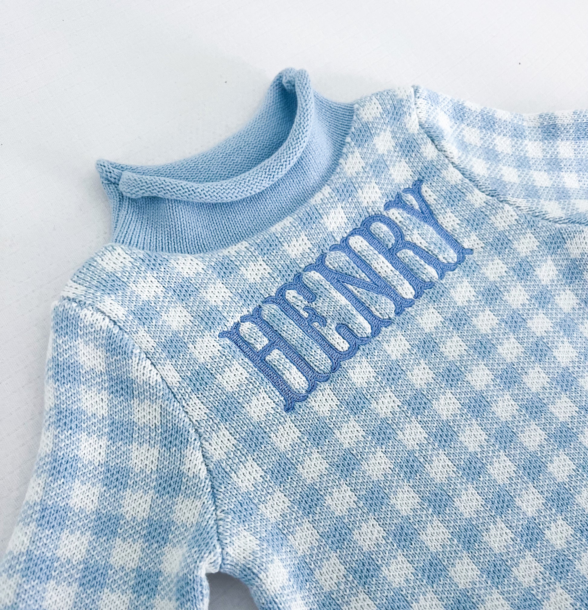 Get cozy and stylish with our Blue Gingham Rollneck Sweater! This unique knit sweater features a fun and playful gingham pattern, perfect for adding a pop of color to any outfit. Stay warm and trendy this season with our must-have sweater.