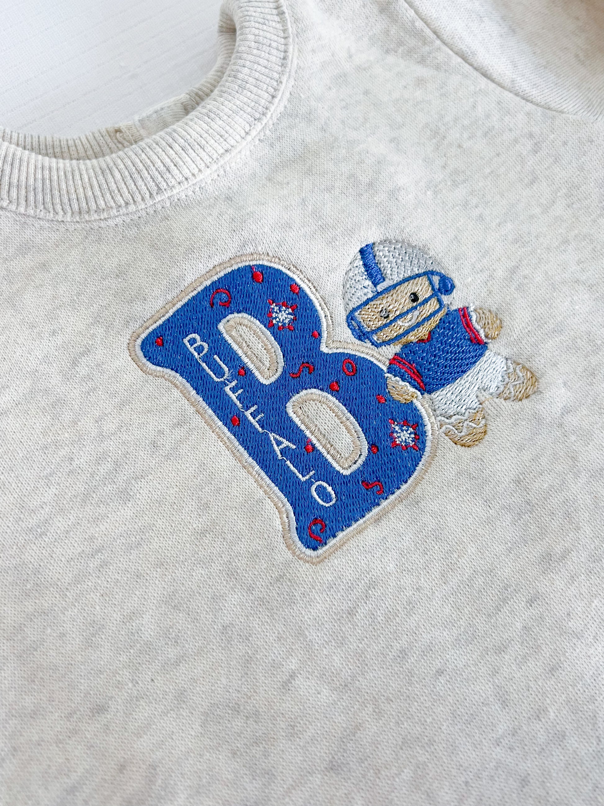 Gingerbread Buffalo Embroidery Onesie Sweatshirt - Heathered