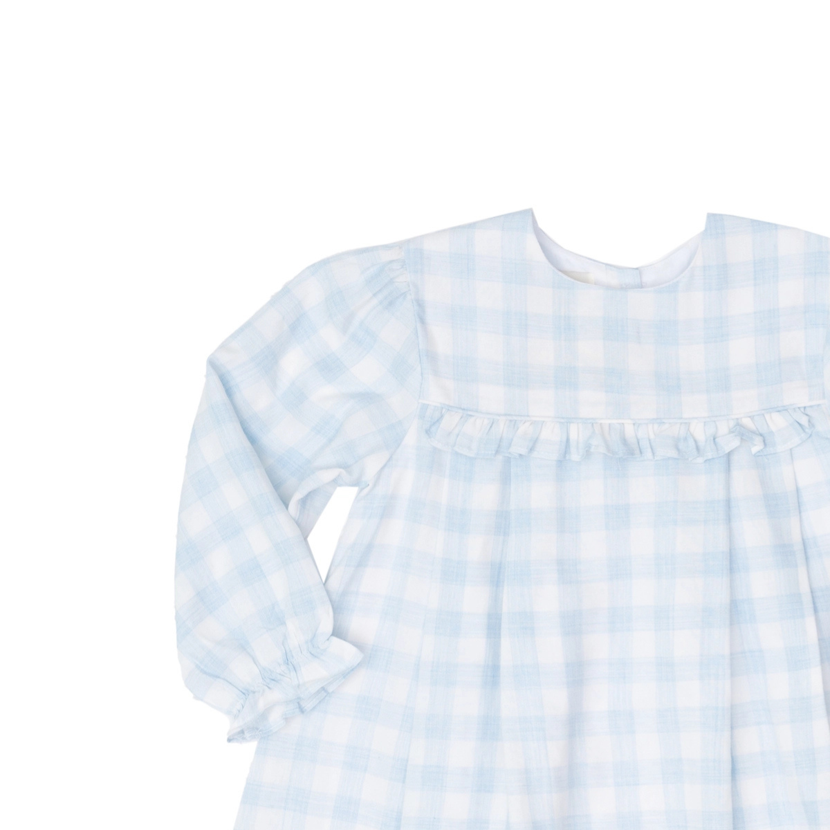 This Soft Blue Check Girls Dress brings a cheerful charm to any little girl’s wardrobe. Its gentle blue check pattern adds a touch of classic style, while the soft fabric ensures all-day comfort for playtime adventures. Perfect for sunny days or special occasions, this dress combines sweet design with easy wearability, making every moment a little more delightful.