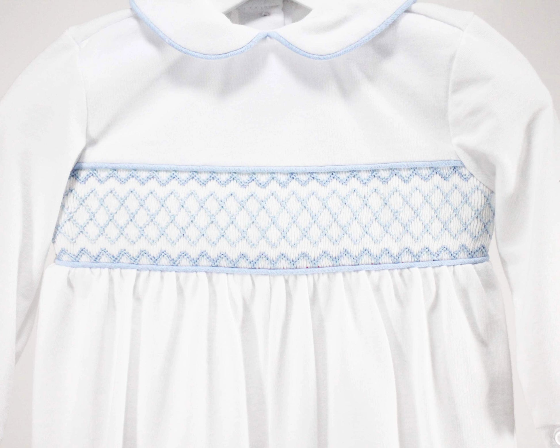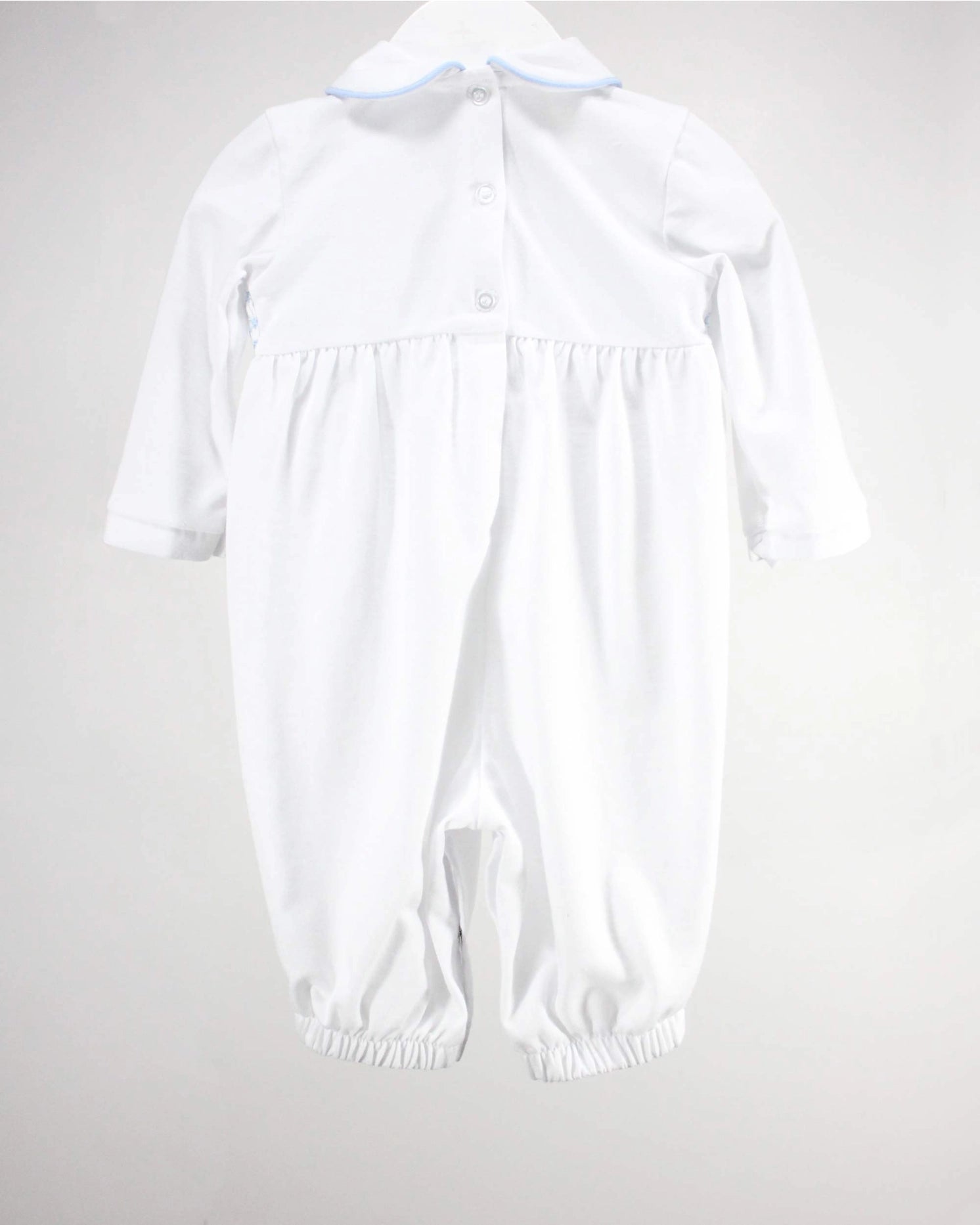 Step into the charm of timeless classics with Baby Blessings Clothing. Our White and Light Blue Levi Gown is a testament to our passion for creating high-quality garments for babies. This baby gown, designed with a touch of classic southern elegance, is carefully stitched to bring magic into every detail. Dress your child beautifully, and let their joy stand out in this charming piece.
