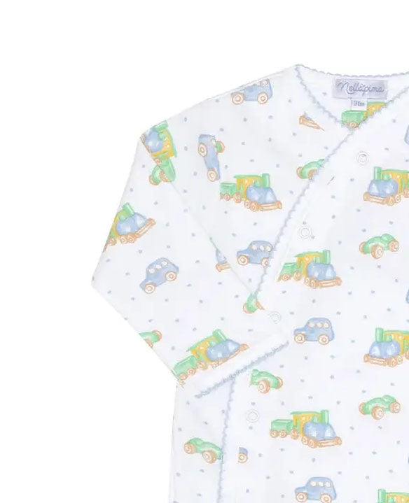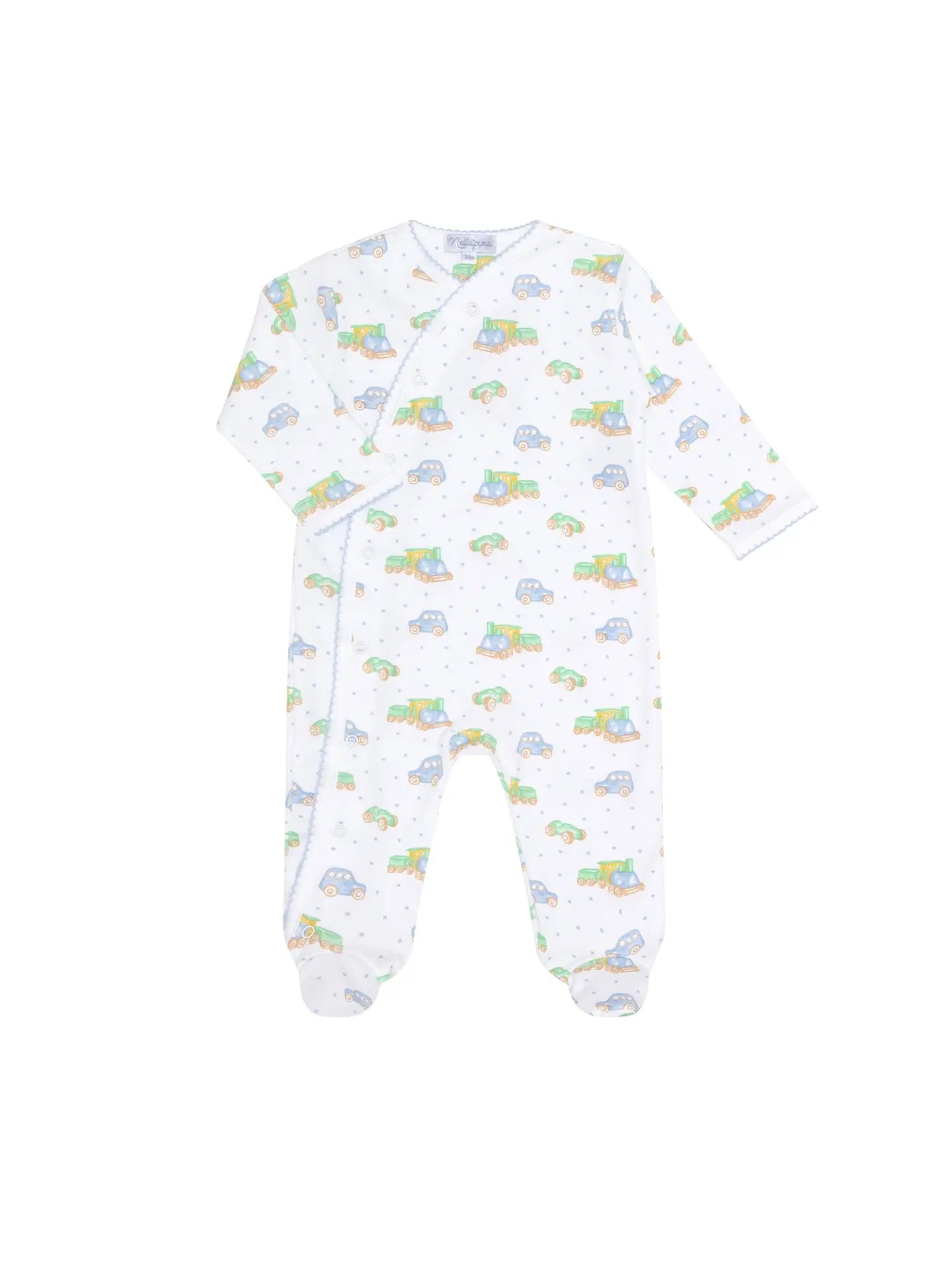 Wrap your little one in comfort and charm with our Wooden Toys Crossover Footie. Made from 100% Peruvian Pima Cotton, this ultra-soft footie features a delicate crossover design for easy dressing and snap closures for convenience.